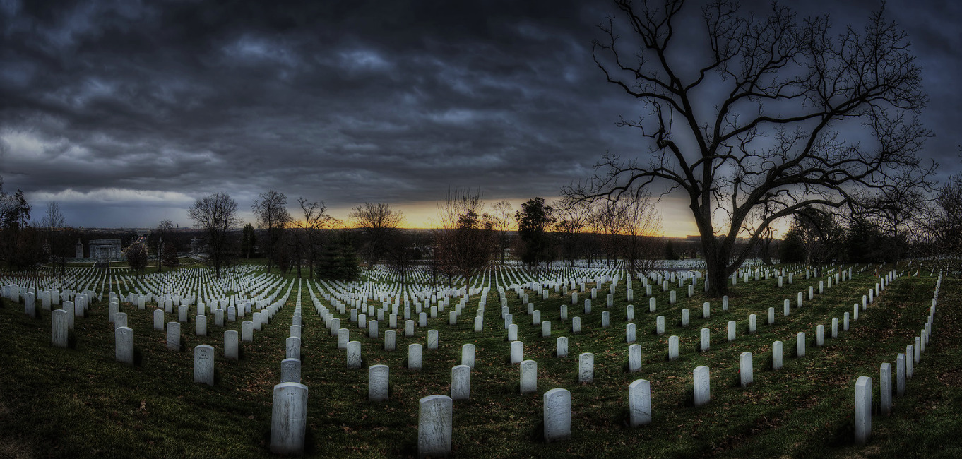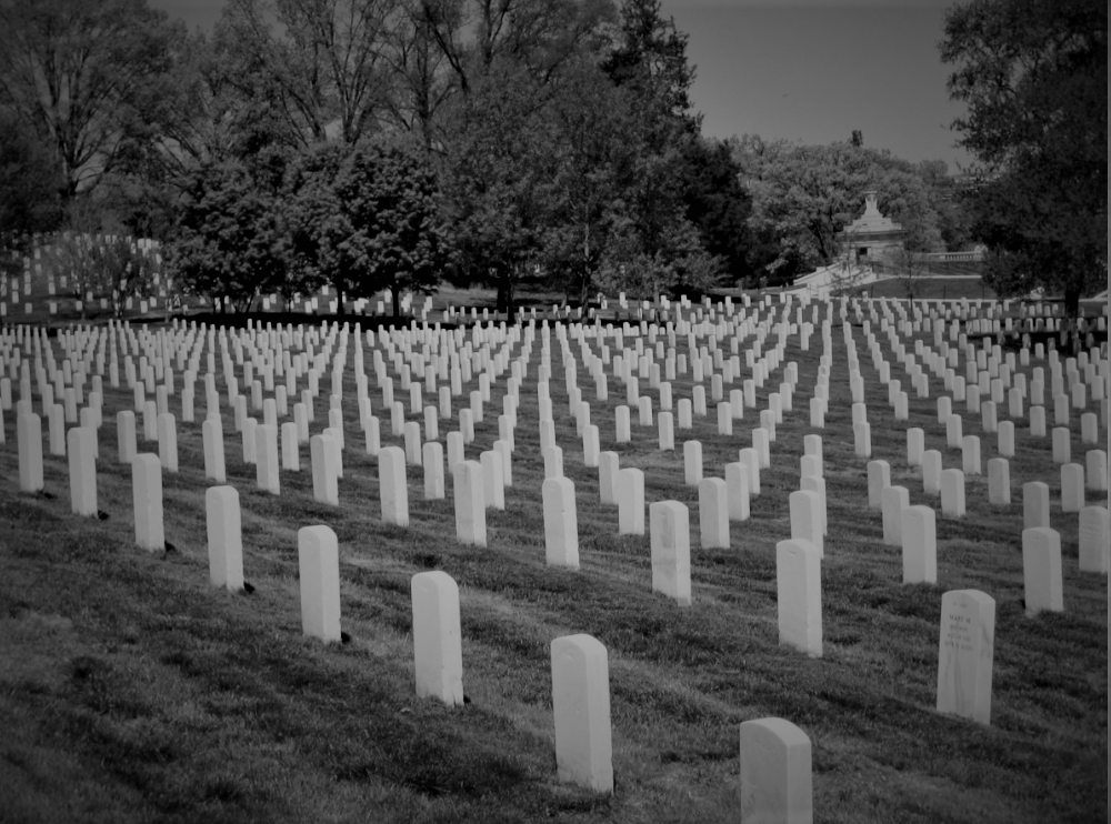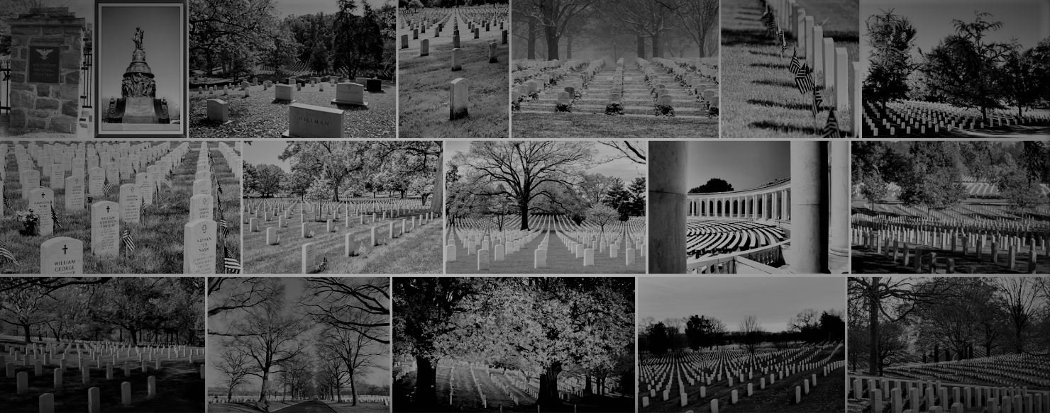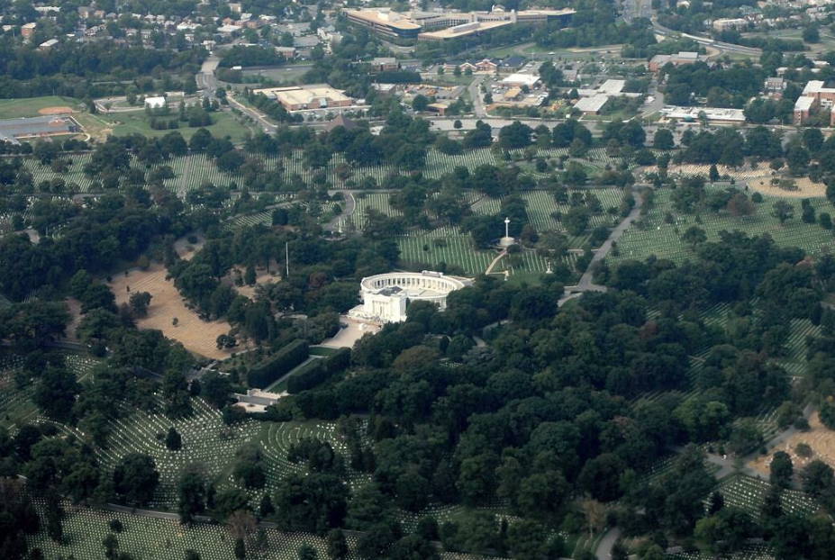 Cmentarz Narodowy w Arlington. To cmentarz wojskowy Stanów Zjednoczonych (USA)w hrabstwie Arlington w stanie Wirginia, na obszarze (260 ha) tu pochowano około 400 000 bohaterzy wojny, prezydenci, prezesi Sądu Najwyższego i astronauci. Departament Armii Stanów Zjednoczonych, wchodzący w skład Departamentu Obrony Stanów Zjednoczonych kontroluje cmentarz. Wciąz to miejsce jest synonimem wagi zwycięstwa słynnych bohaterów, zwiedzania i pamięci narodowej USA .