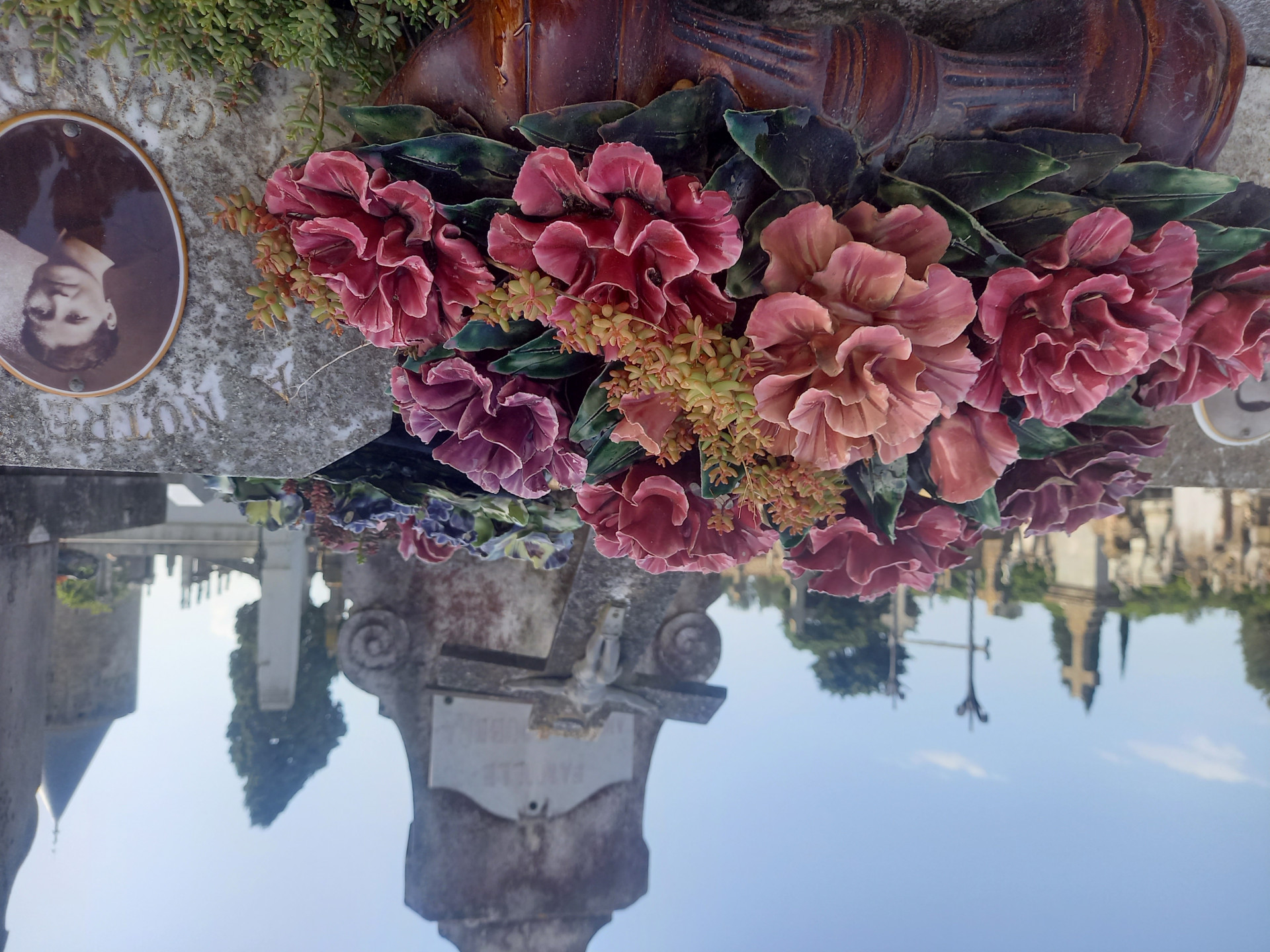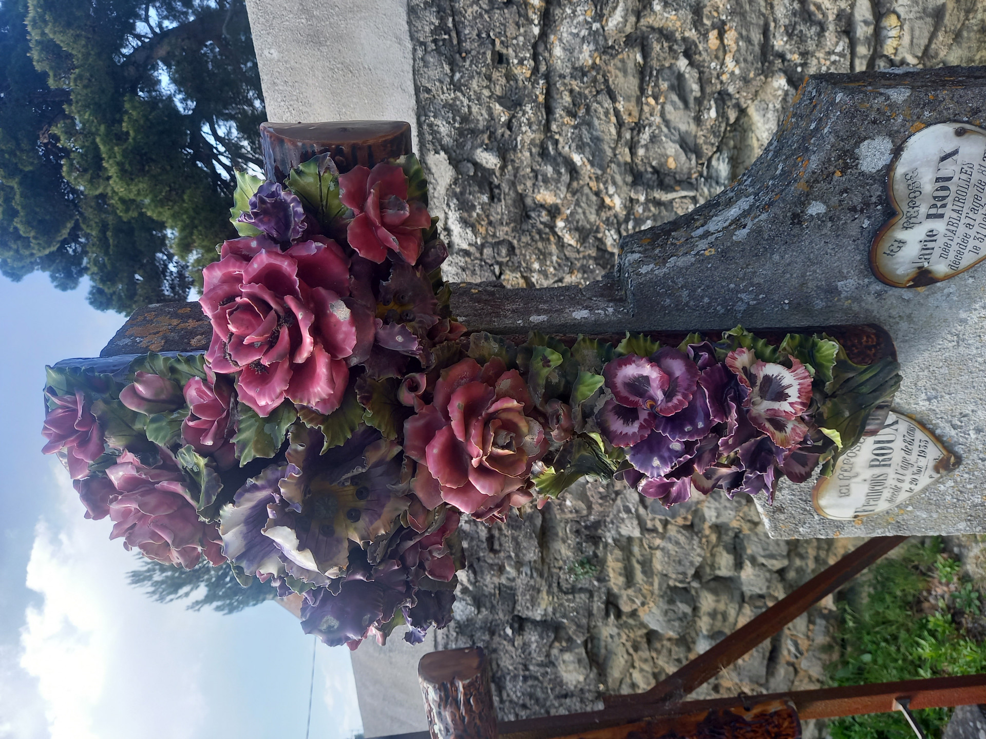 Cmentarz przy starych murach obronnych. Unikalne kwiaty ceramiczne na grobach. Autor zdjęć JSz.